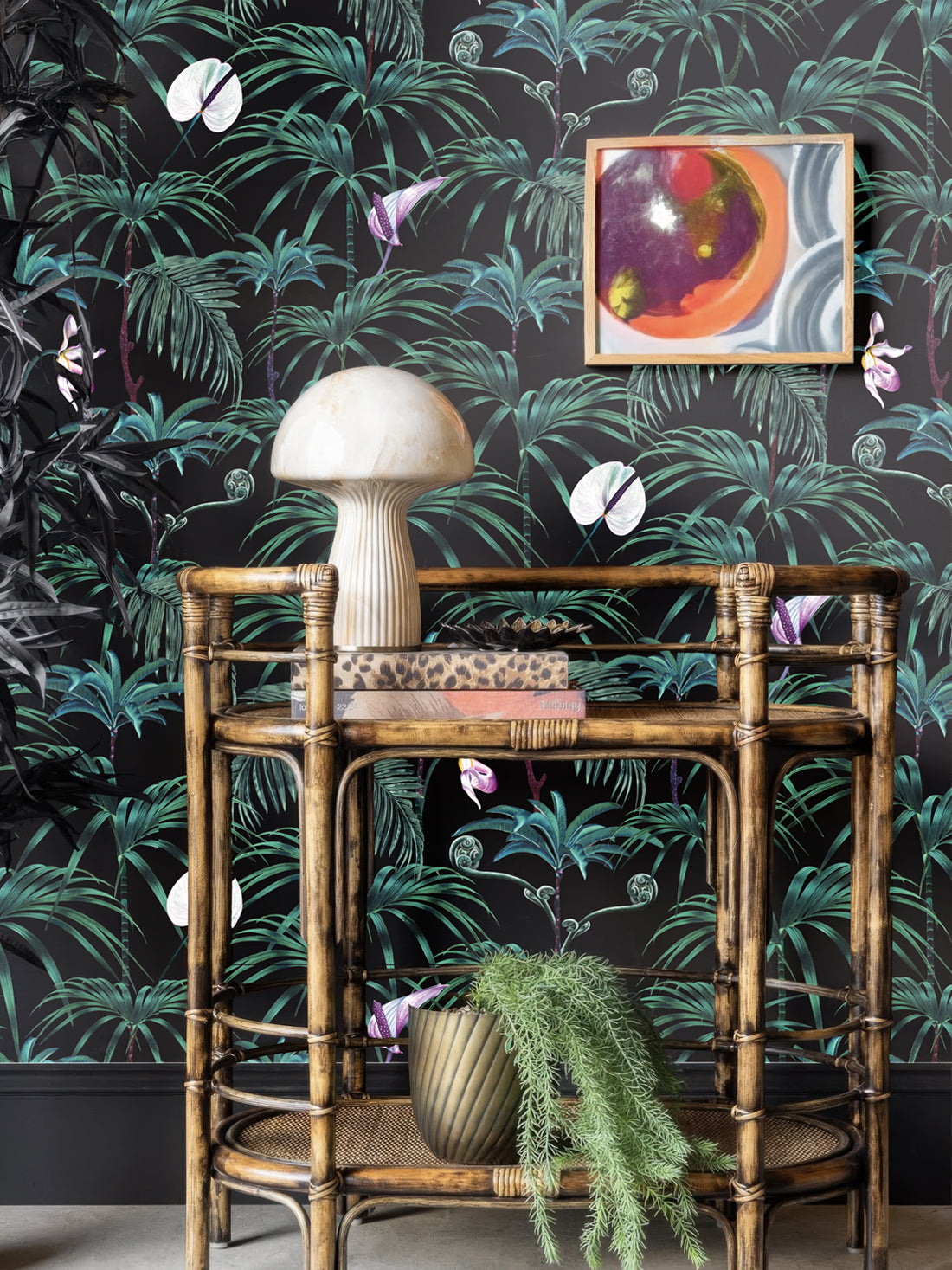 Elysian Palms Black Wallpaper